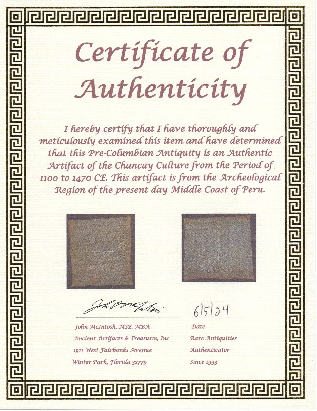 Pre Columbian Authentic Chancay Lace Textile Shroud Spooky Spirits COA