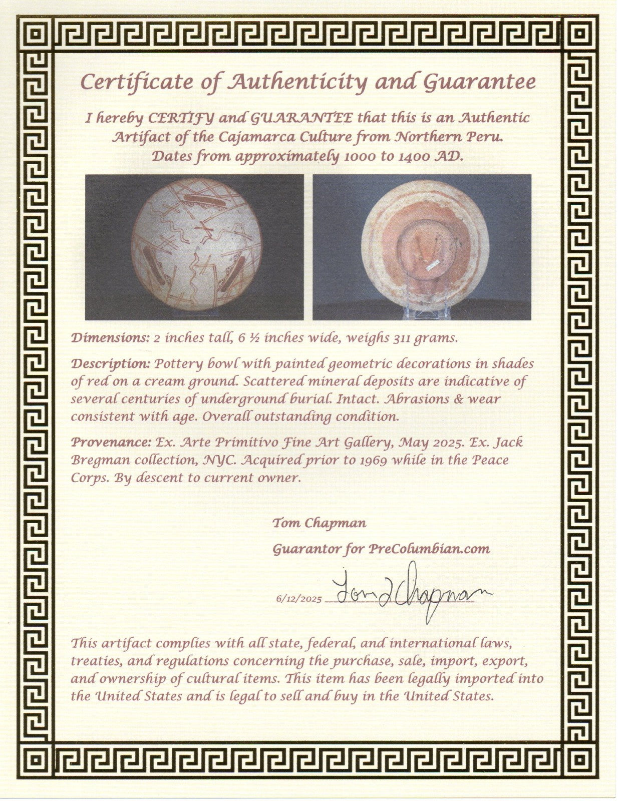 Authentic Pre Columbian Artifact Decorated Bowl Cajamarca Peru Pre Inca COA 208