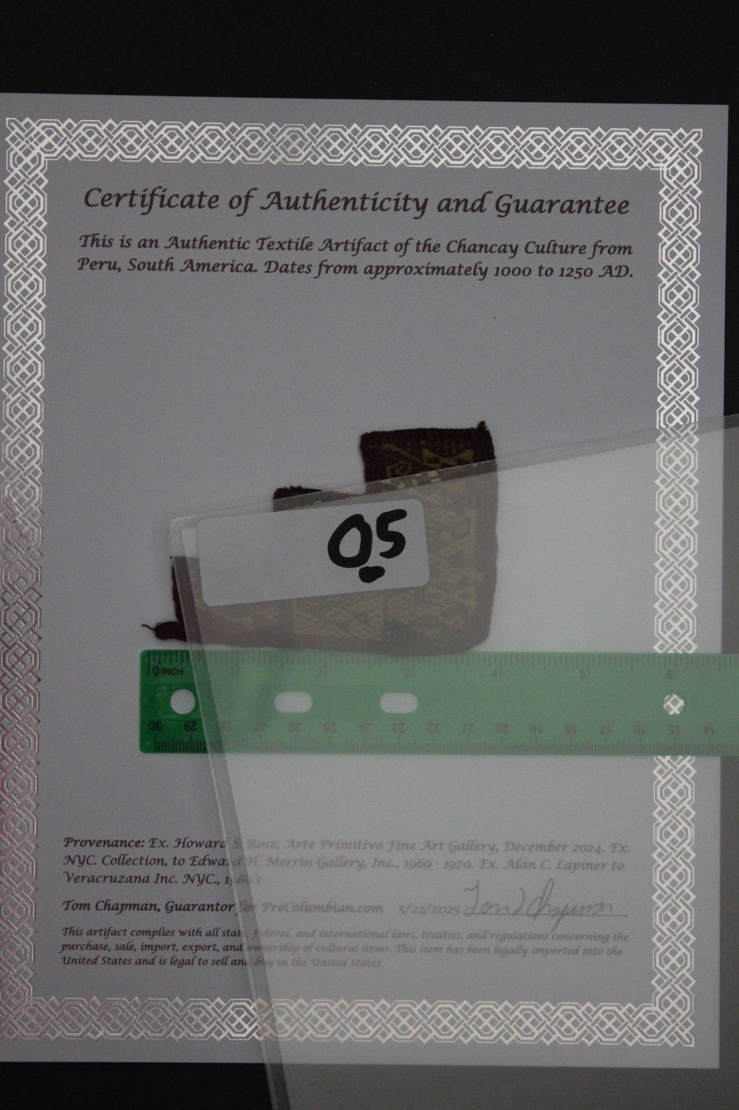 Pre Columbian Authentic Artifact Frameable Textile Border Chancay Peru COA 05