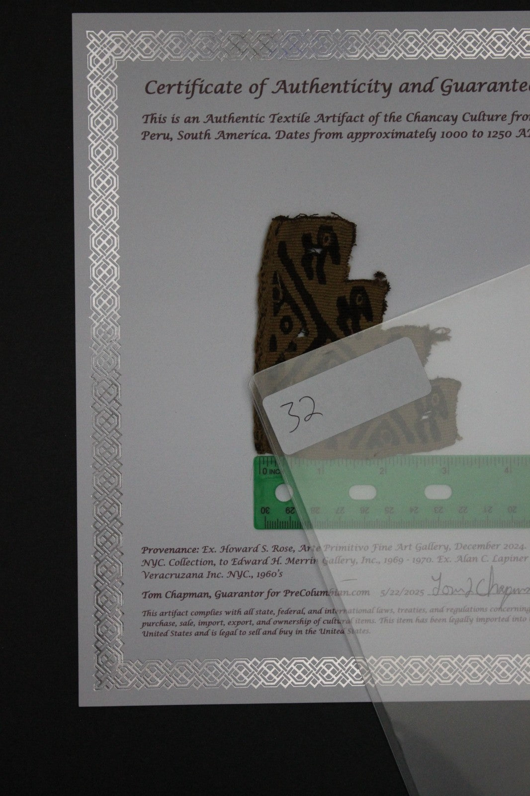 Pre Columbian Authentic Artifact Frameable Textile Border Chancay Peru COA 32