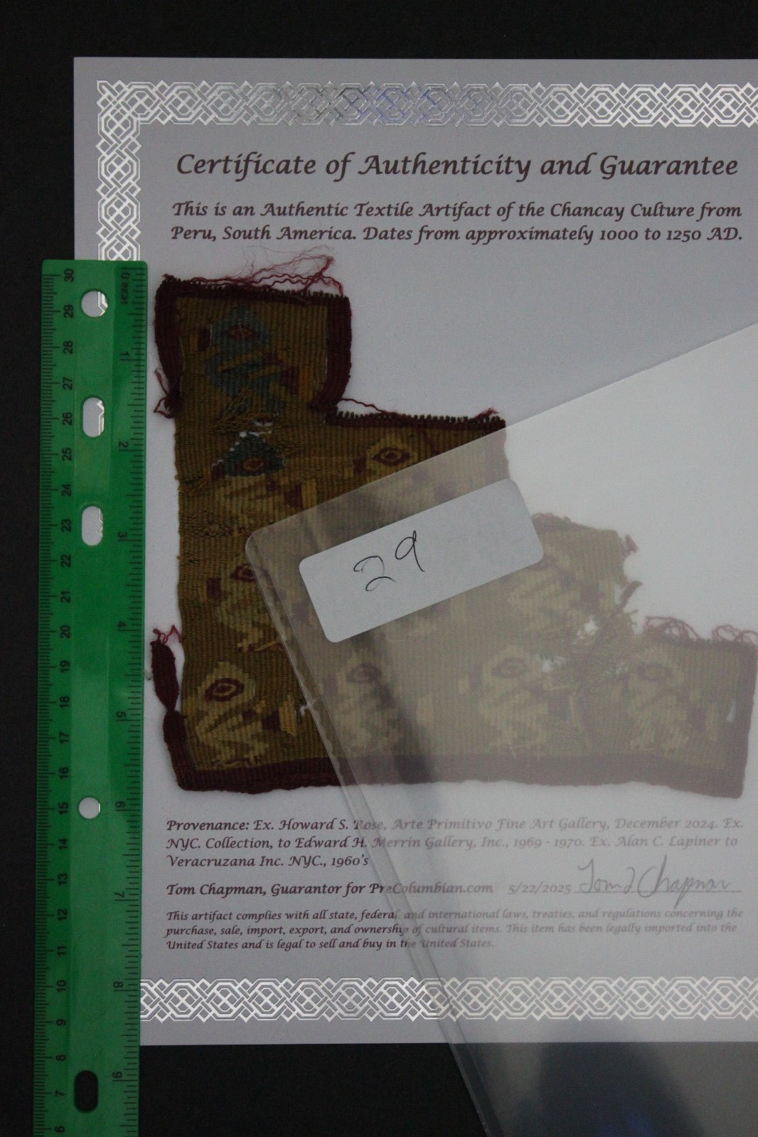Pre Columbian Authentic Artifact Frameable Textile Border Chancay Peru COA 34