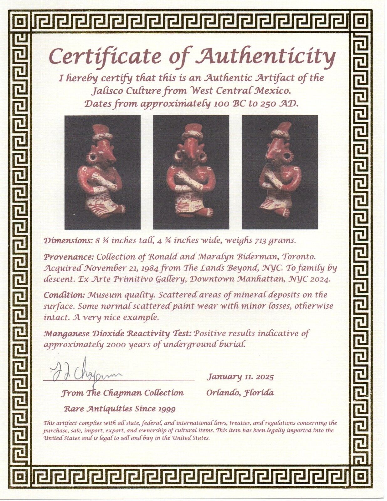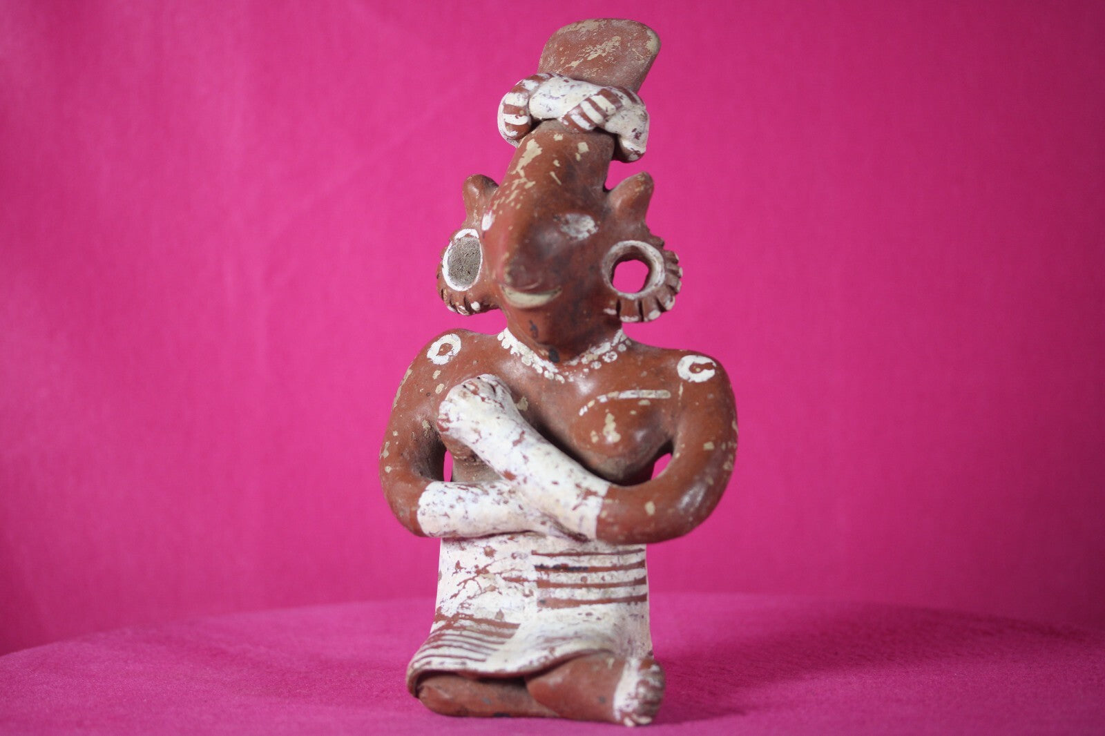 Authentic Pre Columbian Artifact Goat Face Woman Jalisco Ex Arte Primitivo T104
