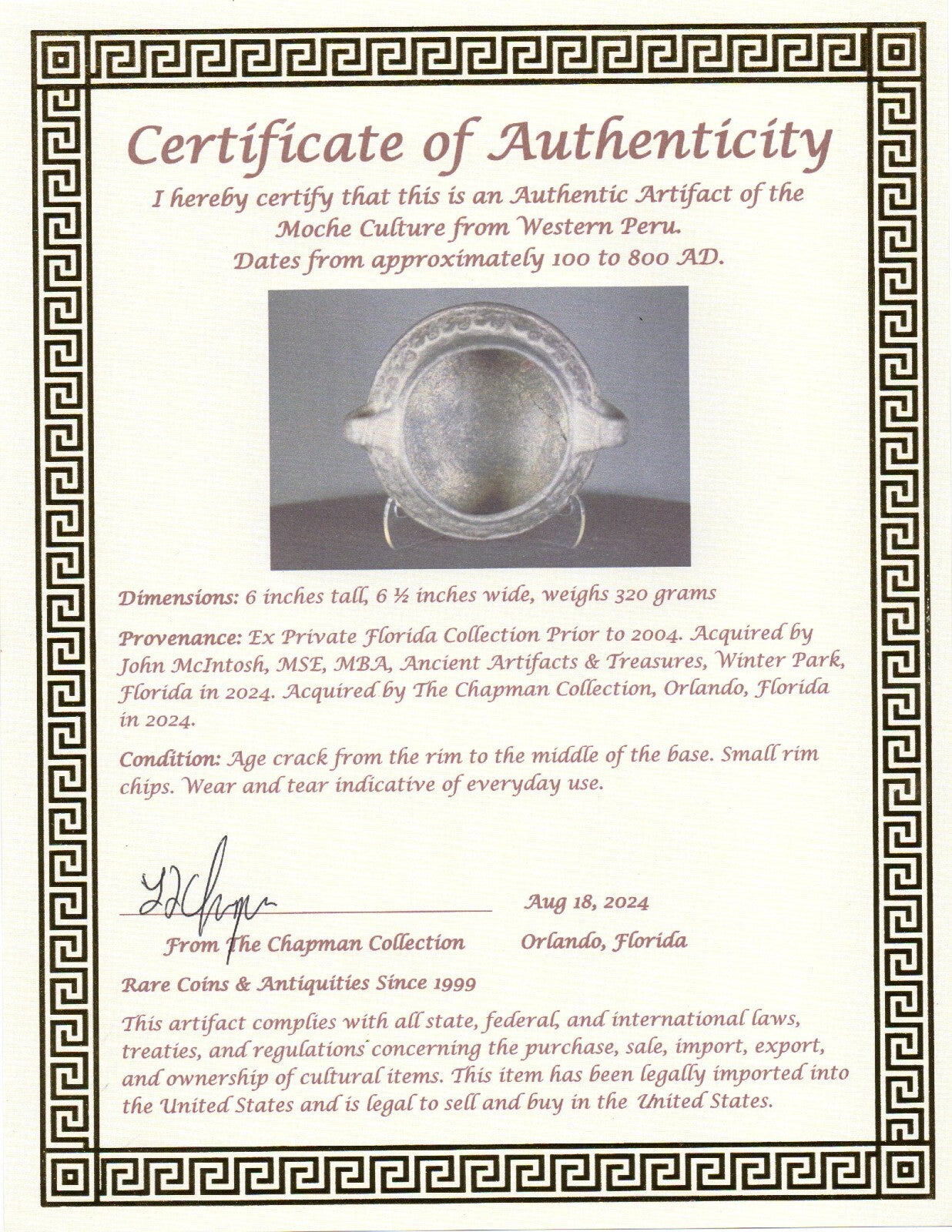 Authentic Pre Columbian Artifact Moche Bird Motifs Bowl 100-800 AD Peru COA J19