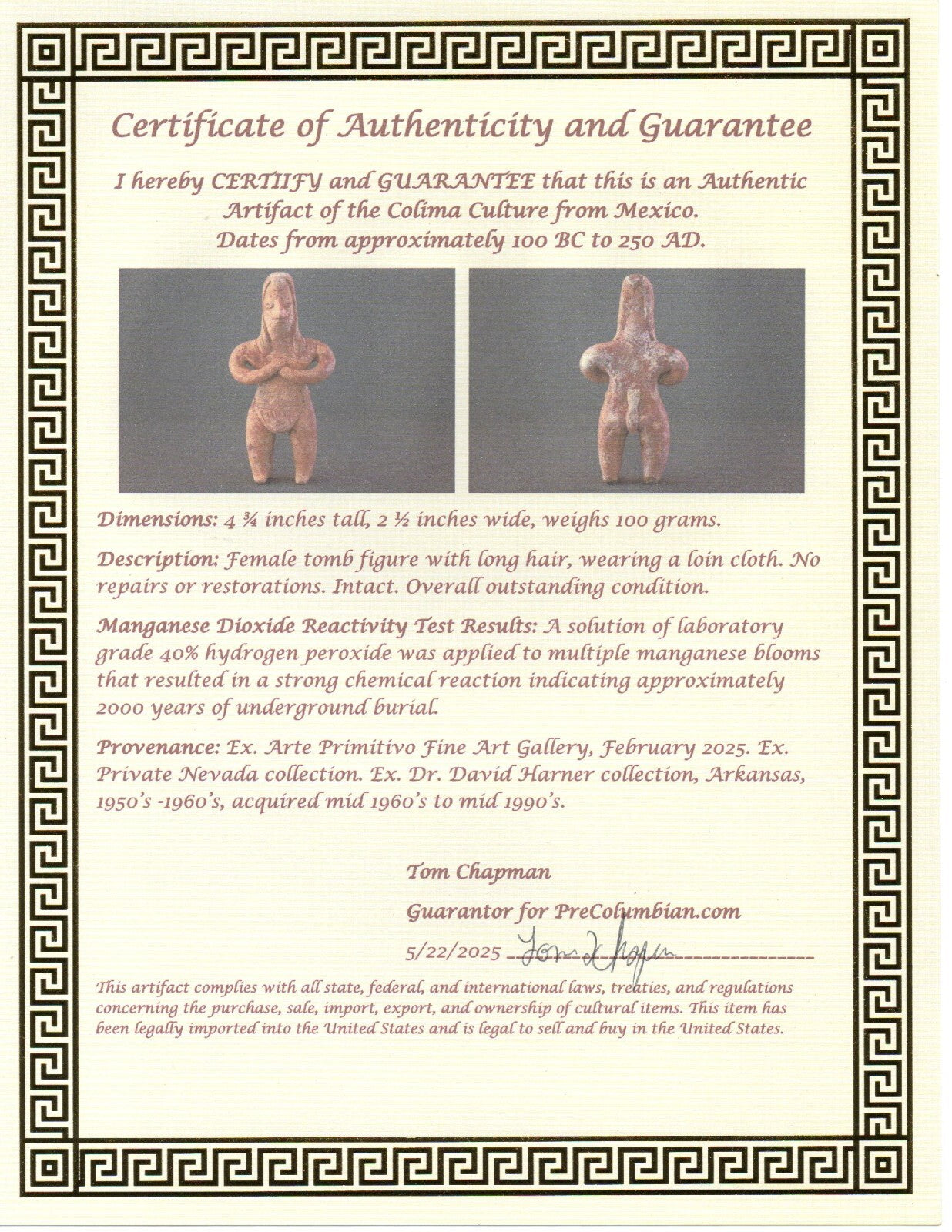 Pre Columbian Authentic Artifact Pretty Lady Tomb Figure Colima Mexico COA 176