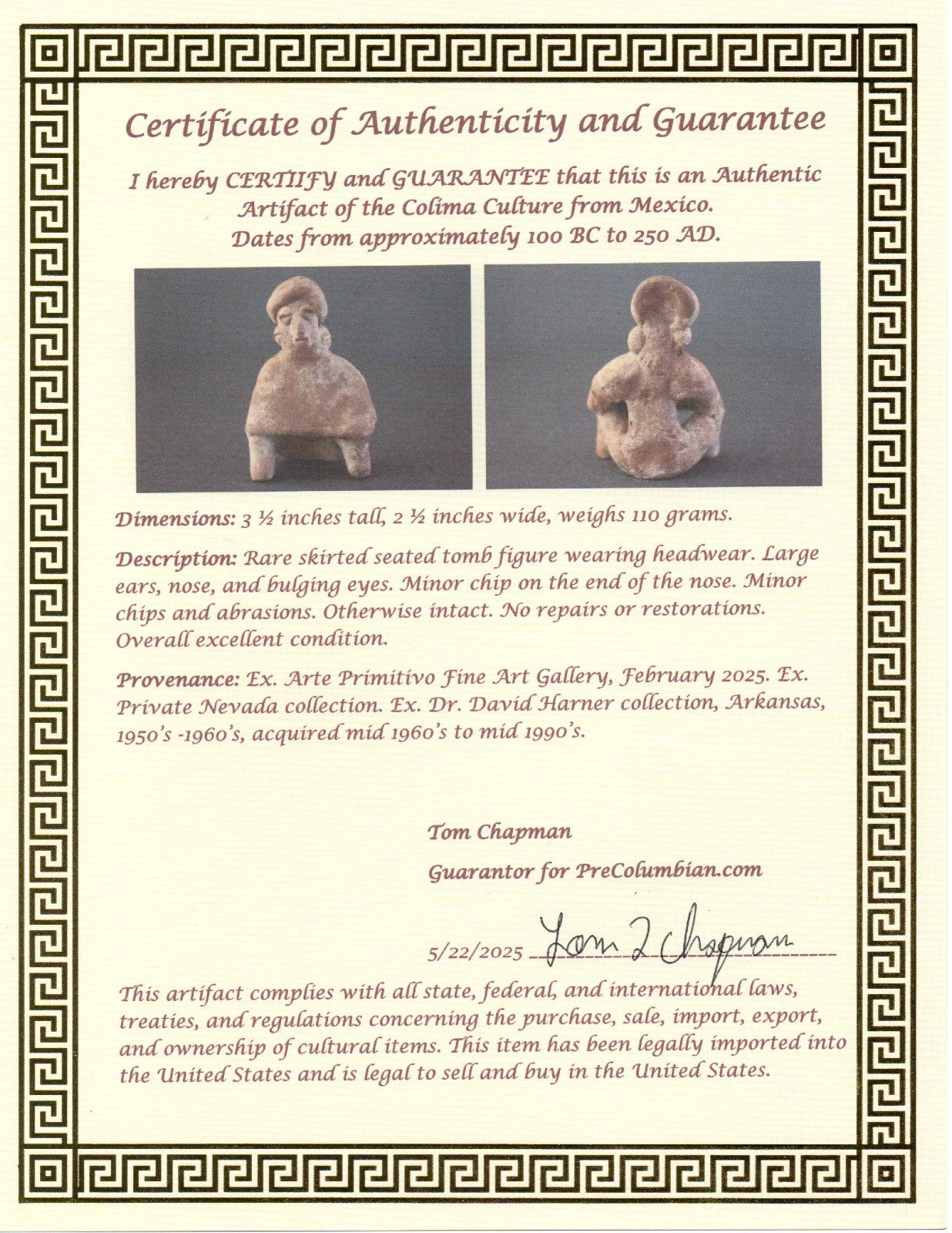 Pre Columbian Authentic Artifact Rare Skirted Tomb Figure Colima Mexico COA 185