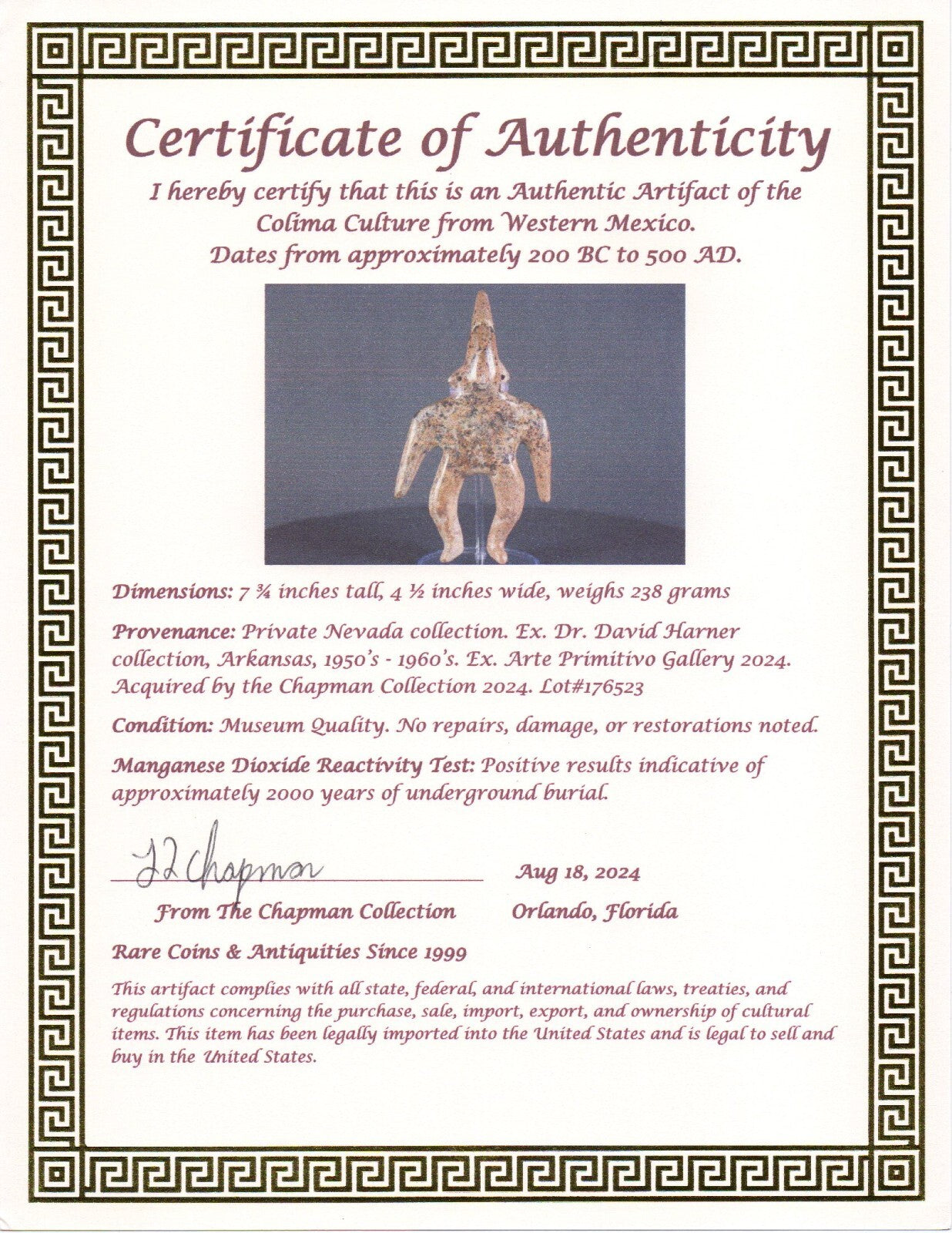 Authentic Pre Columbian Artifact Tomb Figure Colima Ex Arte Primitivo COA B42