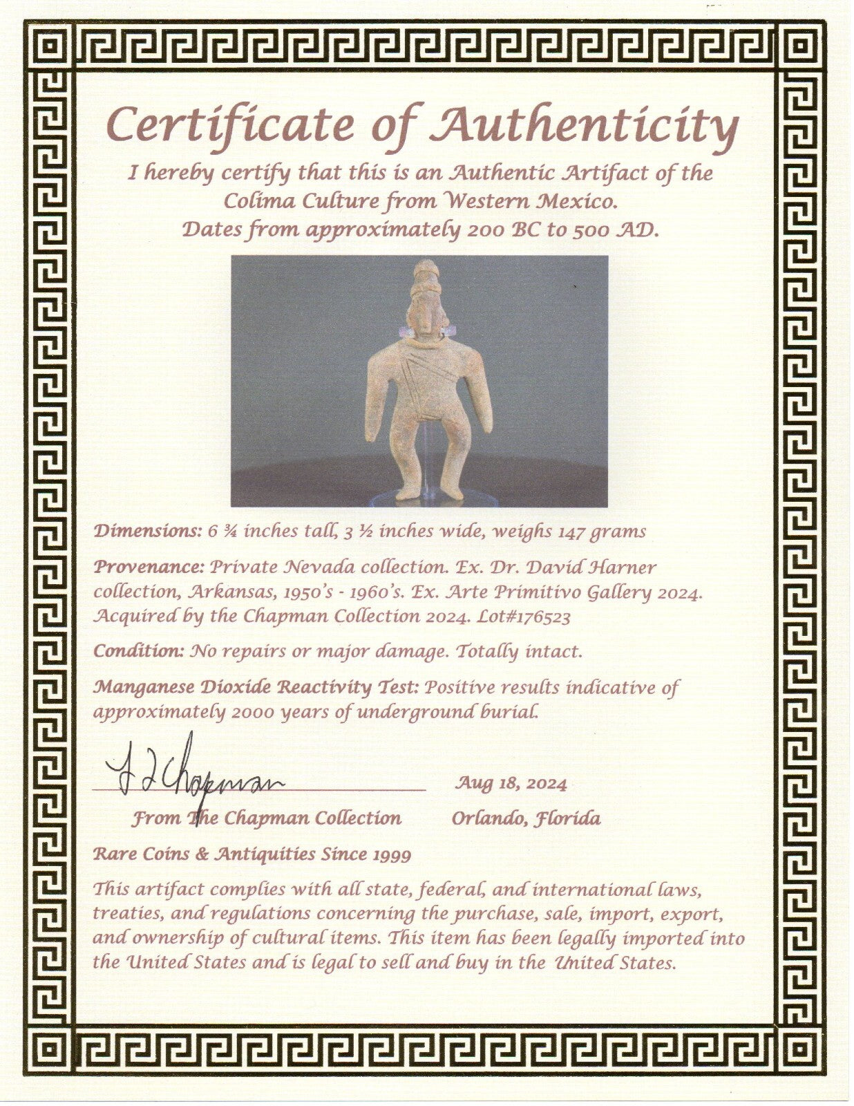 Authentic Pre Columbian Artifact Archaic Tomb Figure Colima Mexico COA T76