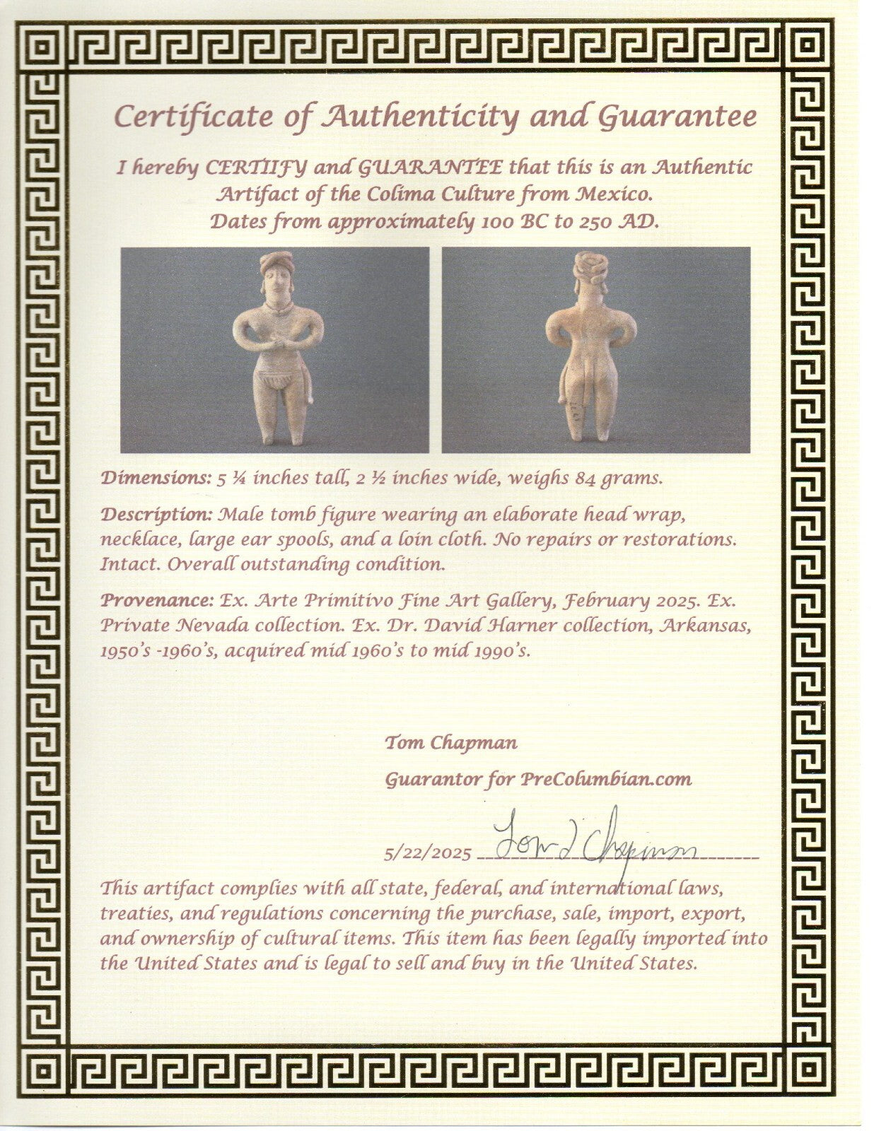 Pre Columbian Authentic Artifact Tomb Figure Colima Mexico 100 BC-250 AD COA 170