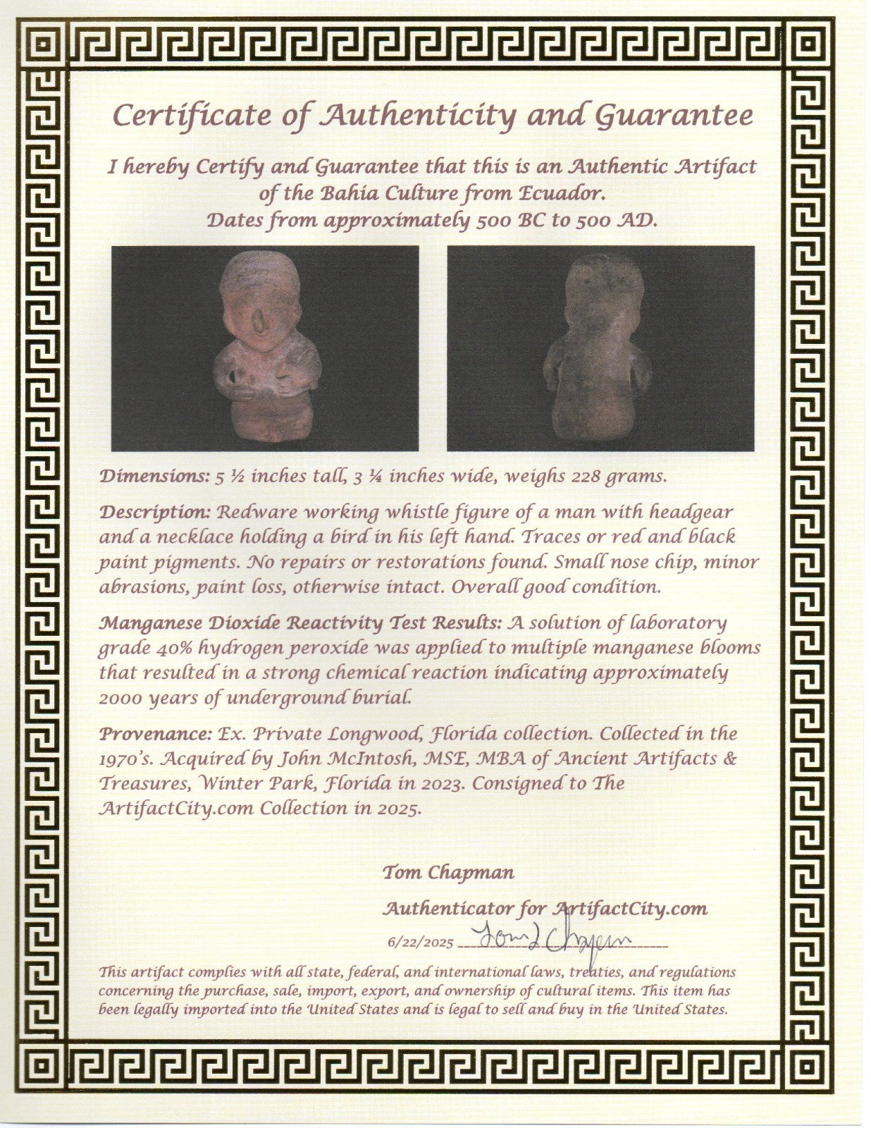 Pre Columbian Authentic Artifact Bahia Whistle Figure Ecuador 500BC-500AD COAJ44