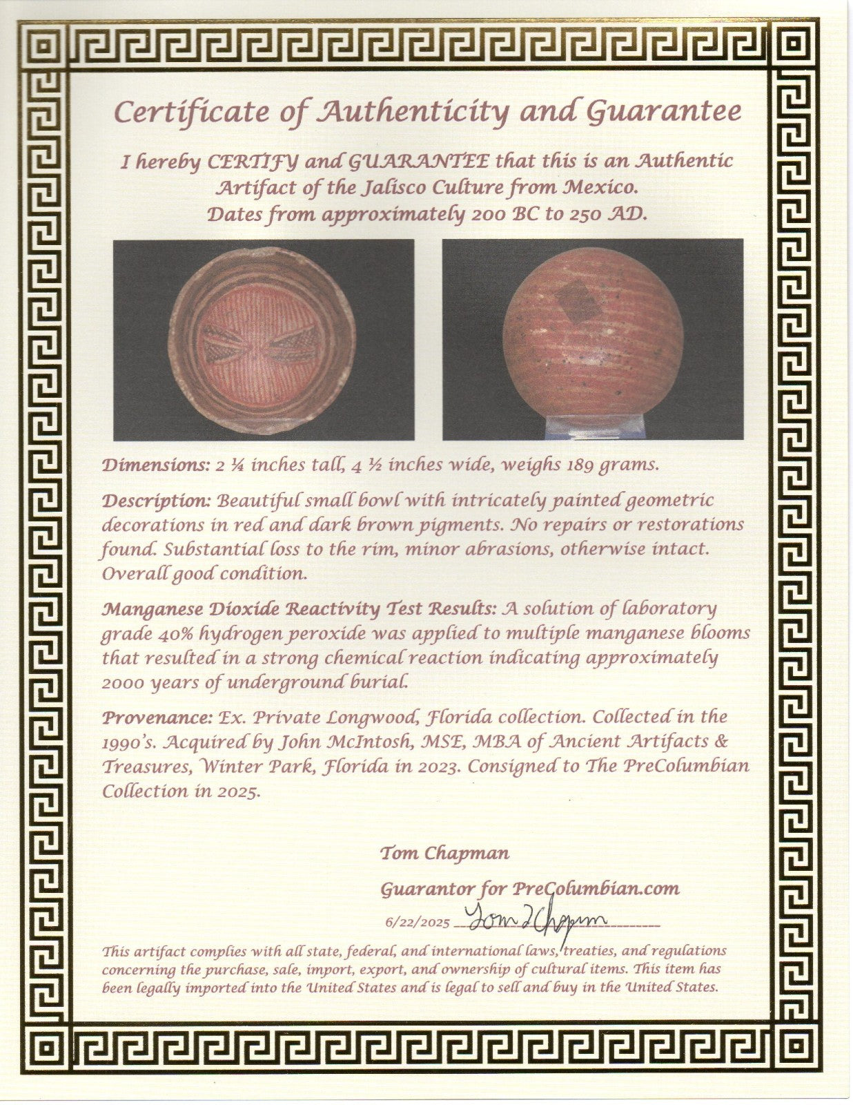 Pre Columbian Authentic Artifact Jalisco Small Bowl Mexico 200BC - 200AD COA J43