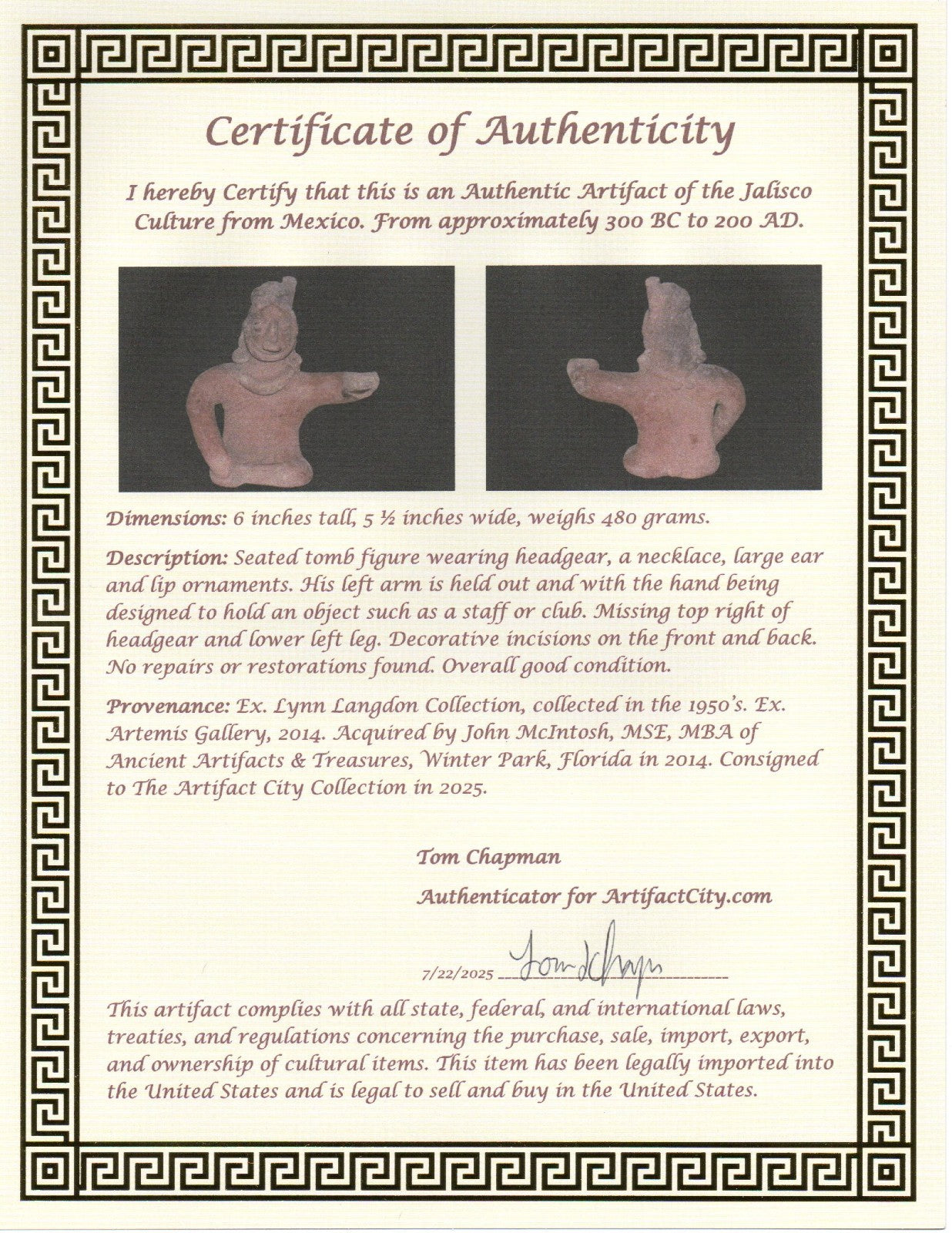 Pre Columbian Authentic Artifact Jalisco Tomb Figure Mexico 300BC-200AD COA J51