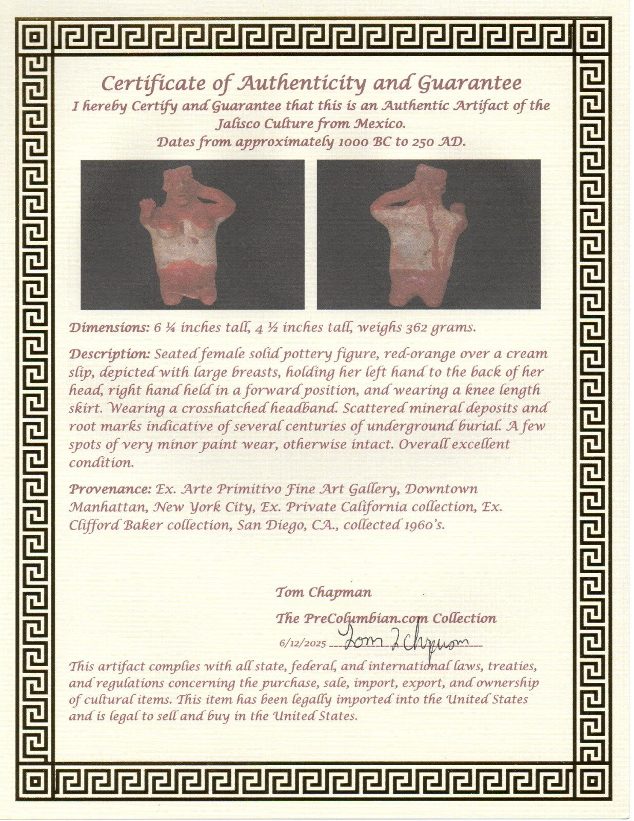 Pre Columbian Genuine Artifact Female Jalisco Figure Mexico 250BC-1000AD COA 209